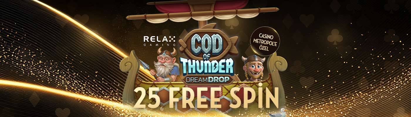 • Cod of Thunder Dream Drop slotunda geçerli 25 Free Spin kazanın.